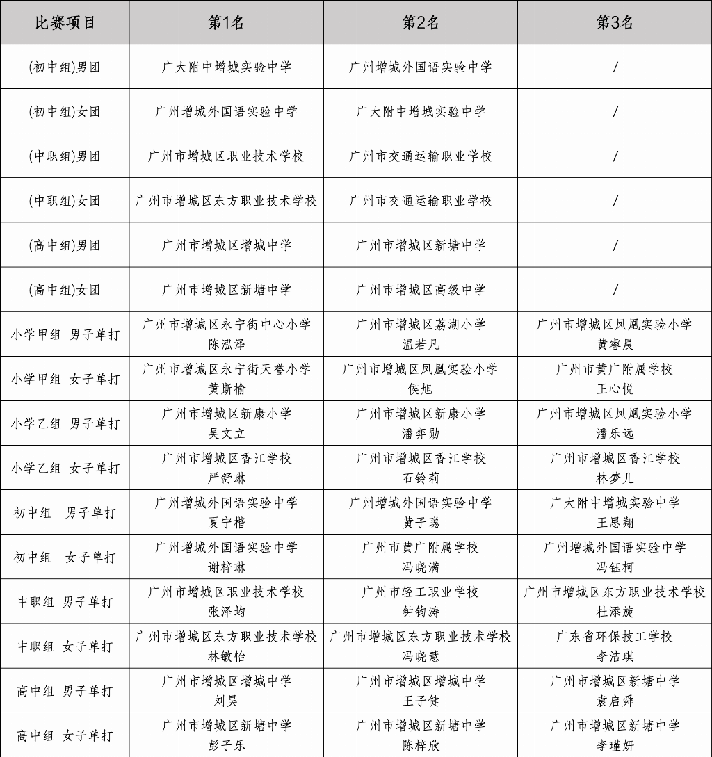 (附表:赛事各项目参加总决赛的获奖运动员/队名单)